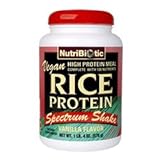 NutriBiotic Vegan Rice Protein Spectrum Shake is a complete nutritional supplement. Whole grain, sprouted brown rice protein is combined with spirulina-bound nutrients, energy producing medium chain triglycerides (MCT), enzymes, and natural vanilla flavor, creating easily digestible, highly assimilable, broad spectrum nourishment for both children and adults. Ideal for individuals who suffer from food allergies and digestive difficulties.NutriBiotic Vegan Rice Protein is produced by means of a unique enzyme process. A proprietary blend of organic plant enzymes are used to separate the fiber and carbohydrates from the protein portion of the whole grain brown rice. Low temperatures used during processing prevent denaturing of the amino acids. NO CHEMICALS are used at any time. Due to this enzyme process, color, taste, and texture may vary.Each serving of Rice Protein Spectrum Shake provides over 120 readily assimilated nutrients in an easy to mix powder. The vitamin and mineral structures have been fully reacted with 100% pure Kosher Certified spirulina to possess all the properties found in concentrated whole foods including proteins, lipids, glycoproteins, lipoproteins, nucleoproteins, complex carbohydrates, phytopigments, flavonoids, fatty acids, enzymes, co-enzymes, and fiber.Rice Protein Spectrum Shake is free of common food allergens such as soy, milk, eggs, wheat, nuts, or preservatives.GLUTEN FREE · GMO FREE · PESTICIDE, HERBICIDE & PCB FREEAs a protein supplement, mix one scoop into a glass of water or rice milk, or add to any meal. Use one to three times daily as a protein supplement or as directed by a he